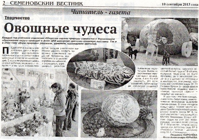 Статья в газете Семеновский вестник, посвященная окружному конкурсу "Дары природы" 2013г