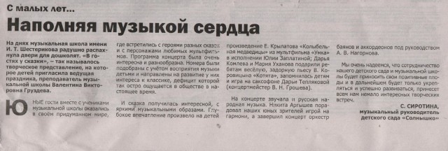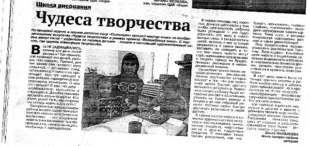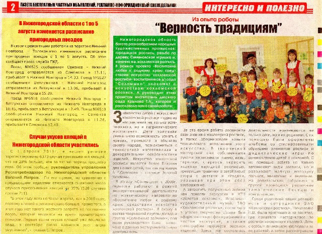 Статья в газете "Деловая пятница", посвященная работе ДОУ по направлению художественно-эстетического развития 2011г