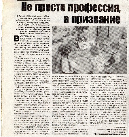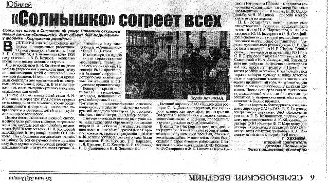 Статья в газете Семеновский вестник, посвященная юбилею ДОУ 2012г