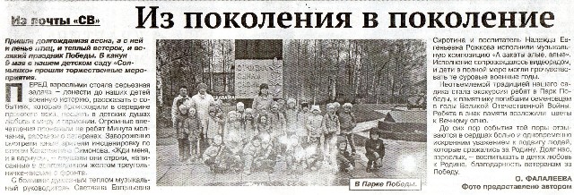 Статья в газете Семеновский вестник, посвященная празднованию Дня Матери 2015г