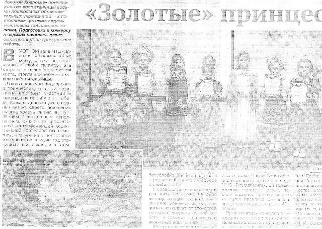 Статья в газете Семеновский вестник, посвященная конкурсу "Маленькая принцесса золотой хохломы" 2014г